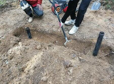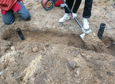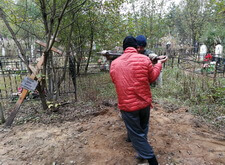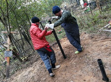 Нам же необходимо было привести территорию могилы в полный порядок. Приступая к работе, мы первым делом вкручиваем определяющие фундамент сваи.